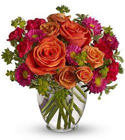 Roses and MatsumotoRoses, Matsumoto asters, miniature carnations |