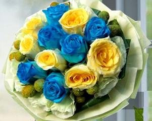 6Blue & 6yellow Roses bouquet... yellow roses may replace by orange roses , it depends on the availability of the product.